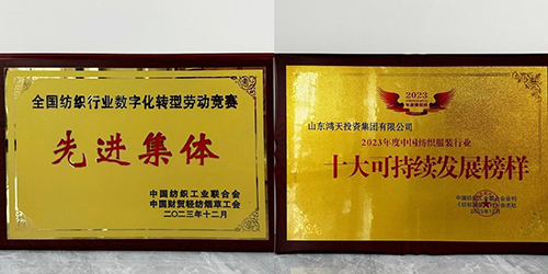 數智融合一直是鴻天堅持創新的著力點。鴻天集團去年收獲了“2023年度山東省紡織服裝行業數字化轉型創新單位”、“2023年全國數字化轉型勞動競賽先進集體”等重要榮譽,取得了亮眼成績與行業認可。