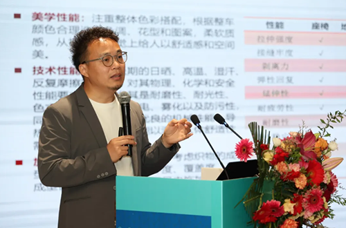 ![]() “橫機(jī)面料在汽車內(nèi)飾中的開發(fā)與應(yīng)用近幾年開始興起,汽車內(nèi)飾座艙設(shè)計(jì)的年輕化、多元化、個(gè)性時(shí)尚化為橫機(jī)針織面料的應(yīng)用提供了更大的空間。”曠達(dá)科技集團(tuán)股份有限公司總工程師吳雙全以《汽車內(nèi)飾用橫機(jī)針織面料的設(shè)計(jì)開發(fā)與創(chuàng)新應(yīng)用》為題, 分享了汽車內(nèi)飾紡織品中的針織部分。他表示,隨著電動(dòng)汽車消費(fèi)的拉動(dòng)以及自動(dòng)駕駛概念的不斷深化,座艙的造型和功能都會(huì)發(fā)生顛覆性的變化,橫機(jī)針織技術(shù)所提供的3D一體成型工藝使得汽車內(nèi)飾表皮材料的“織可包”,即織造成形產(chǎn)品直接進(jìn)行包覆成為了可能,這將是汽車內(nèi)飾表皮材料發(fā)展的方向。同時(shí),通過(guò)產(chǎn)品結(jié)構(gòu)紋理的設(shè)計(jì)與飛織技術(shù)的融合,2D和2.5D內(nèi)飾飛織面料也將很大程度改變現(xiàn)有通過(guò)不同材料拼接的方式,實(shí)現(xiàn)設(shè)計(jì)效果的工藝流程,提高生產(chǎn)效率,減少材料浪費(fèi)。綜合來(lái)看,綠色可持續(xù)發(fā)展(Recycle, Bio-base等)以及智能化(透光、發(fā)光、觸控等)、時(shí)尚化和高品質(zhì)化將成為內(nèi)飾用橫機(jī)針織面料未來(lái)發(fā)展的重要方向。