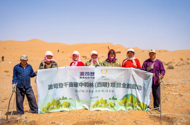 2024年,波司登還啟動(dòng)了阿拉善碳中和林(四期)工程。該工程計(jì)劃在未來(lái)五年內(nèi)每年造林200畝,總造林綠化面積達(dá)到1,000畝,種植苗木10,000株,為阻止騰格里沙漠東擴(kuò)、減少土地沙漠化培植綠色希望,逐步實(shí)現(xiàn)“與受損的土地重修舊好,與自然的生命和諧共生”的目標(biāo)。