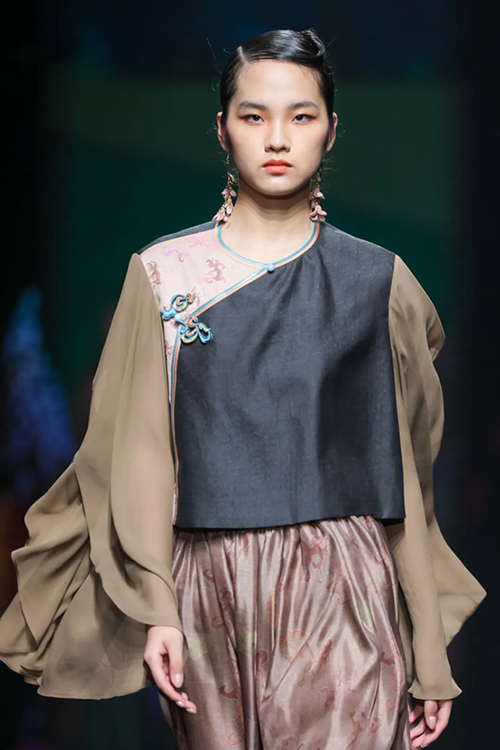 ![]() ![]() ![]() 參與“盛澤日·2025春夏中國時尚女裝流行趨勢發布”的龍泉禧里品牌,經由中國十佳時裝設計師盛亞榮的巧思巧手,圍繞起源于戰國時期的藝術瑰寶蠶絲植物“非遺花羅”展開。并大量使用花扣、盤扣傳統技藝、旗袍創新制作工藝等,兩千多年來的各類文化瑰寶在盛澤煥發全新生命力。