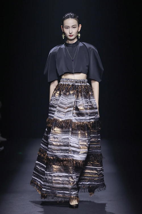 LIQINGWEI與LACRIMATORY紛紛選用天然纖維與新型科技纖維面料結合,原創圖案與紋樣融入高級質感中,也讓關注時裝周的中外設計師,看到盛澤面料投產中的無限可能與延伸。