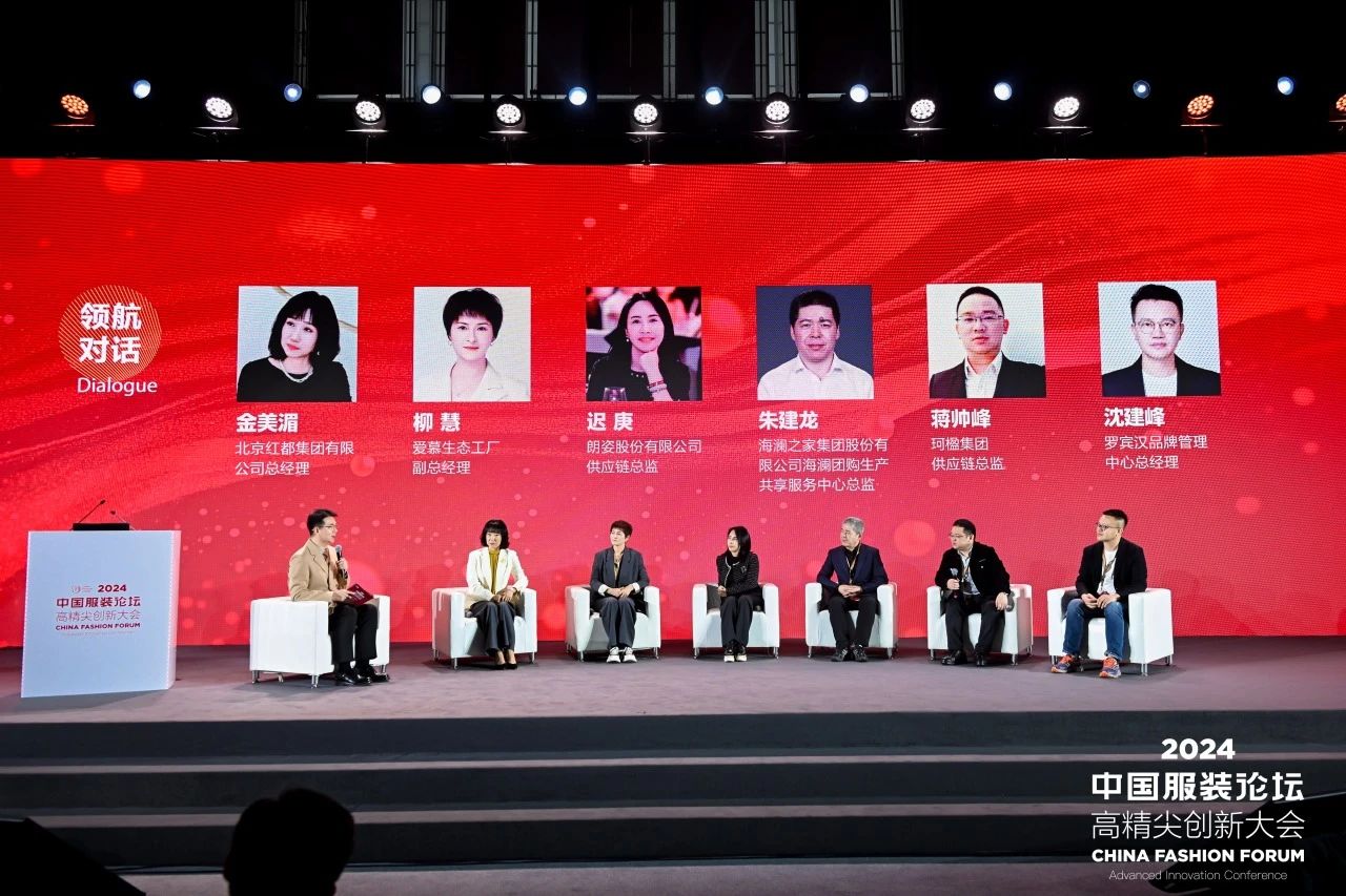 ![]() 在領航對話環節,企業家們圍繞技術創新與供應鏈升級、品牌設計與供應鏈協同、 綠色生產與可持續發展以及產業未來與供應鏈優化等議題,以專業、前沿的角度去探尋當下紡織服裝產業的新機遇與新價值,為服裝產業轉型升級開啟了重要思路。