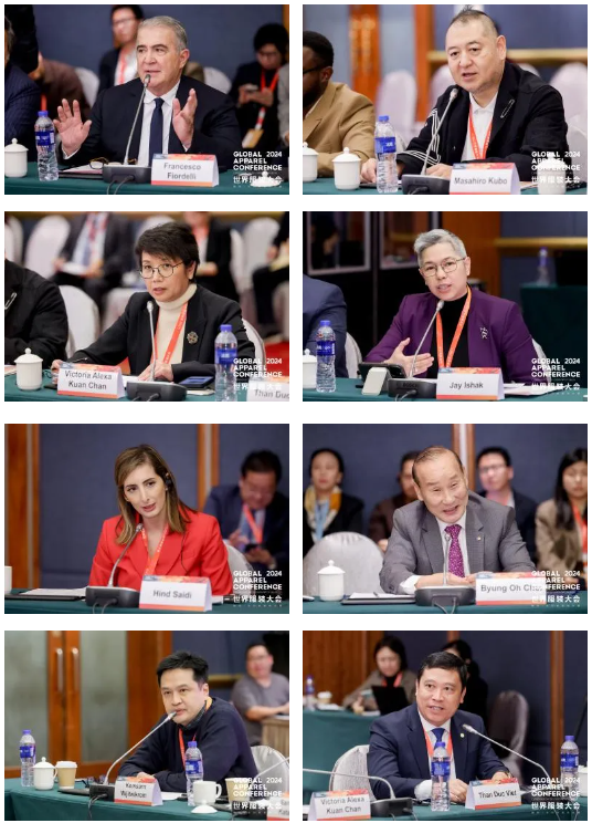 ![]() 圖:以上依次為孟加拉國針織服裝制造和出口商協會執行會長Fazlee Shamim Ehsan,柬埔寨紡織、服裝、制鞋和箱包協會秘書長Loo Chee Chien,埃及服裝及家紡行業商會執行董事Hany Mohamed Kadah,香港紡織商會會長楊勛,法國可持續聯盟理事 Baptiste Lingoungou,印度服裝制造商協會會長Santosh Katariya,印度尼西亞紡織協會副會長Anne Patricia Sutanto,意大利手工藝部門和中小型企業國家聯盟CEO Antonio Franceschini