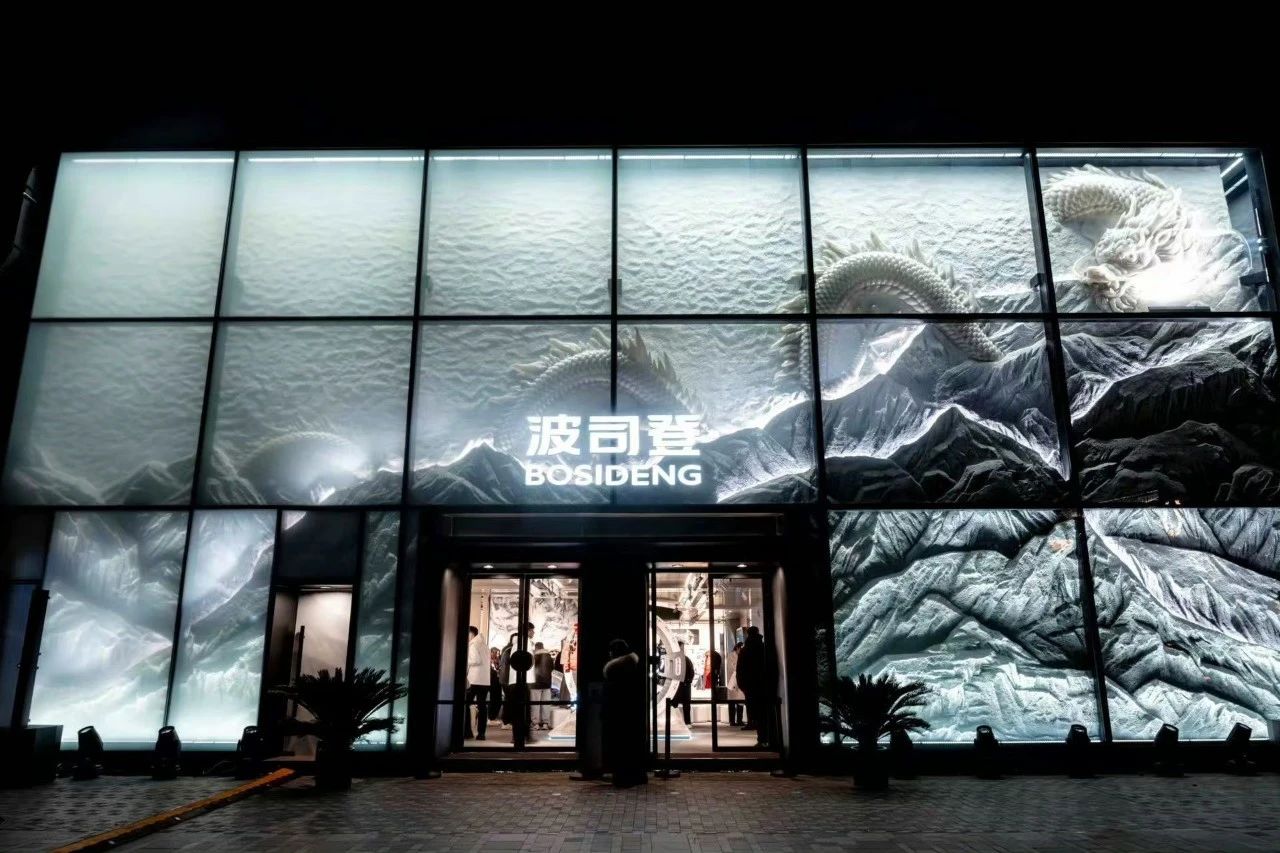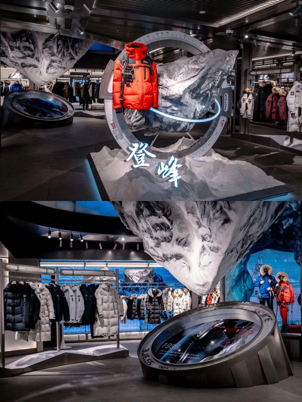 波司登北京三里屯登峰概念店以致敬登峰精神為靈感,圍繞“三極”——珠穆朗瑪峰、南極、北極為核心布局展開,店面以“珠峰+冰雪之龍”呈現,一條栩栩如生的玉龍盤旋于珠峰頂部,象征著自然界的壯麗。談及設計理念,波司登形象管理中心總監宋唯一追溯了登峰概念店的深厚底蘊:自1976年龍年誕生以來,波司登歷經48載春秋的不懈奮斗,已傲然屹立于中國羽絨行業巔峰,被譽為“冰雪之龍”。這一稱號不僅彰顯了波司登的卓越成就,更與中華民族“龍的傳人”文化標識相呼應。