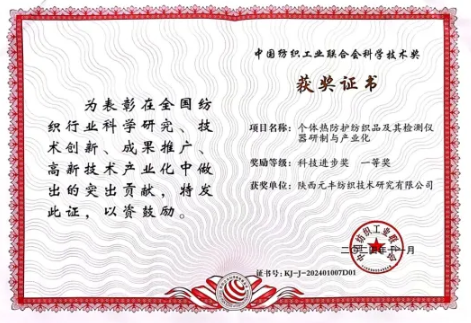 2024年度中國紡織工業(yè)聯(lián)合會科學(xué)技術(shù)獎于近日揭曉。由陜西元豐新材料科技有限公司(原陜西元豐紡織技術(shù)研究有限公司)、西安工程大學(xué)、泰和新材集團股份有限公司、優(yōu)普泰(深圳)科技有限公司、四川大學(xué)、天津工業(yè)大學(xué)共同完成的“個體熱防護紡織品及其檢測儀器研制與產(chǎn)業(yè)化”項目榮獲中國紡織工業(yè)聯(lián)合會科學(xué)技術(shù)獎一等獎。