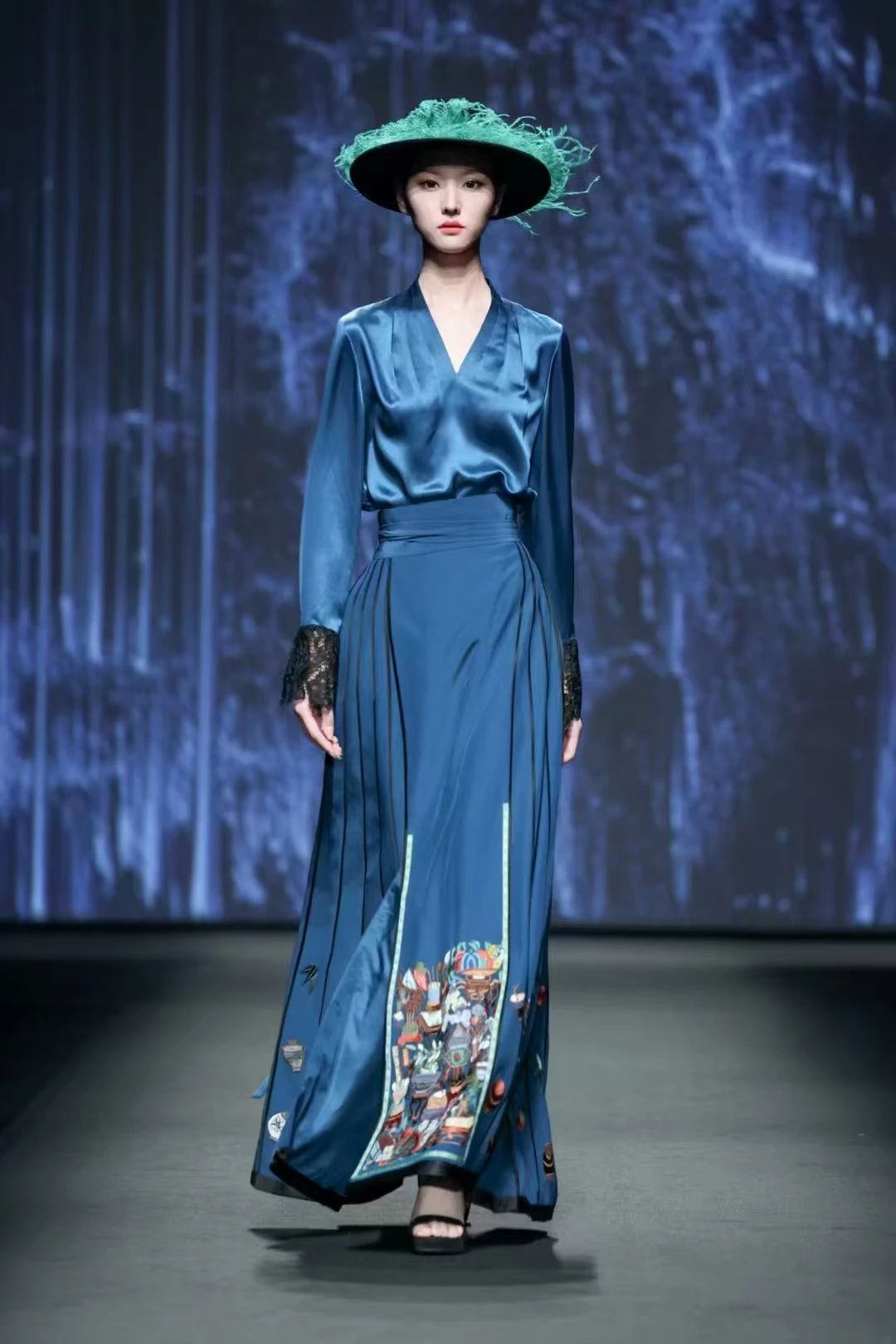 隨著漢服文化的復興和傳統文化的回歸,衣線繡馬面裙的社會傳播和大眾接受均得到大幅度提升,立足山東,面向全國,走向世界,市場需求持續增長。同時,其制作工藝經過發掘、保護與傳承后,被更多的年輕手藝人所掌握,并積極運用到傳統服飾制作和現代服裝設計中,存續狀況整體積極向好。衣線繡馬面裙目前在菏澤曹縣、濟南、日照、臨沂等地有制作,產業發展集中在菏澤曹縣和濟南兩地,部分農村地區也有傳統技藝流傳。
