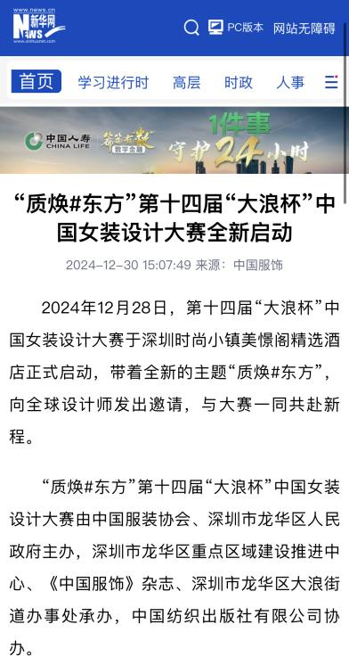 “質煥#東方”第十四屆“大浪杯”中國女裝設計大賽由中國服裝協會、深圳市龍華區人民政府主辦,深圳市龍華區重點區域建設推進中心、《中國服飾》雜志、深圳市龍華區大浪街道辦事處承辦,中國紡織出版社有限公司協辦。