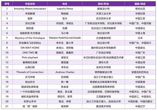這批沉甸甸的稿件,凸顯設計師高超的專業能力。大批國內頂尖設計院校的優質人才紛紛投稿,包括清華大學、中央美術學院、北京服裝學院、東華大學、武漢紡織大學、北京理工大學、香港大學、香港理工大學、香港高等教育科技學院、澳門圣若瑟大學等,其中不乏教授、教師及院校職工,大賽成為各大設計院校關注的熱點事件。來自中國香港、中國澳門、中國臺灣的年輕設計師參賽比例也在增加。