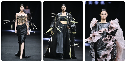 ![]() 評(píng)委們一致認(rèn)為,這些創(chuàng)作者的設(shè)計(jì)邏輯成熟且完整,他們敏銳地將目光聚焦于傳統(tǒng)文化中“小而美”的具象元素,鮮明地展現(xiàn)出各自突出優(yōu)勢(shì),成功將跨界材料融入服裝設(shè)計(jì),完成創(chuàng)意向商業(yè)市場(chǎng)的無縫轉(zhuǎn)換。這些作品深刻體現(xiàn)了“零浪費(fèi)”可持續(xù)理念,設(shè)計(jì)師通過將廢棄布料重塑為裂織布,對(duì)行李編織袋進(jìn)行二次創(chuàng)作,回收工廠與家庭閑置衣物,以及在快遞紙箱和外賣包裝中研發(fā)新材料??萍紤?yīng)用拉滿時(shí)尚張力,有的選手運(yùn)用超輕黏土塑造賽博格機(jī)甲形態(tài),以3D打印筆勾勒獨(dú)特紋樣,有的選手創(chuàng)新采用綠色環(huán)保PLA、TPU及玉米秸稈基材料,3D打印呈現(xiàn)非對(duì)稱結(jié)構(gòu)的智能鱗片面料。來自海外國(guó)家及地區(qū)的設(shè)計(jì)師,更是將他們熟悉的本土文化與中國(guó)藝術(shù)無縫契合。