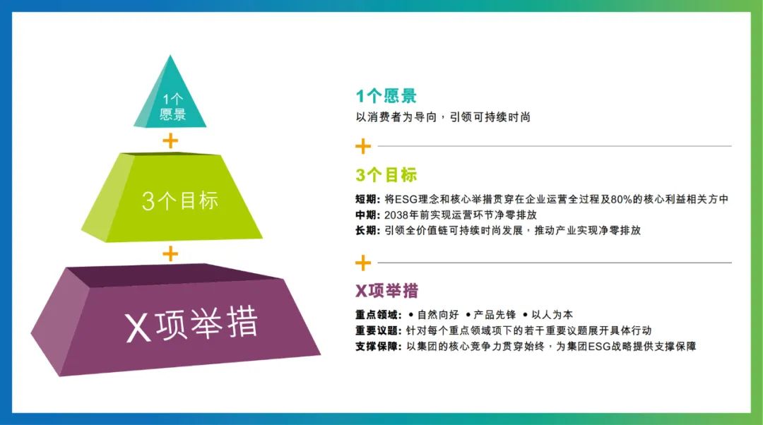 ![]() 在可持續發展層面,波司登以“雙碳”戰略目標為牽引,勇做可持續時尚先行者,積極響應全球氣候治理號召,將可持續發展理念貫穿于企業經營的全價值鏈。發布“1+3+X”ESG戰略及碳目標,確立“以消費者為導向,引領可持續時尚”的ESG戰略愿景,并設定“2038 年前實現運營環節凈零排放”的碳目標。在產品創新上,推出多款環保產品,如泡芙系列可回收輕量羽絨服、完成零碳產品打造的羽絨服及防曬服等;在綠色生產方面,從原材料采購、制造環節到物流運輸,全方位推進產業綠色轉型;在綠色消費領域,推進數智化轉型,上線數據中臺,實現全渠道數據一體化運營,減少運輸浪費和碳排放。波司登還積極參與行業組織,加入聯合國全球契約組織(UNGC)、“時尚氣候創新 30?60 碳中和加速計劃”等,參與制訂紡織服裝行業碳足跡管理體系系列標準,發布羽絨服行業低碳轉型報告,為行業綠色發展樹立榜樣。2025年,波司登MSCI(明晟)ESG評級躍升至 AA 級,創中國服裝行業最優評級,彰顯可持續發展領導力。