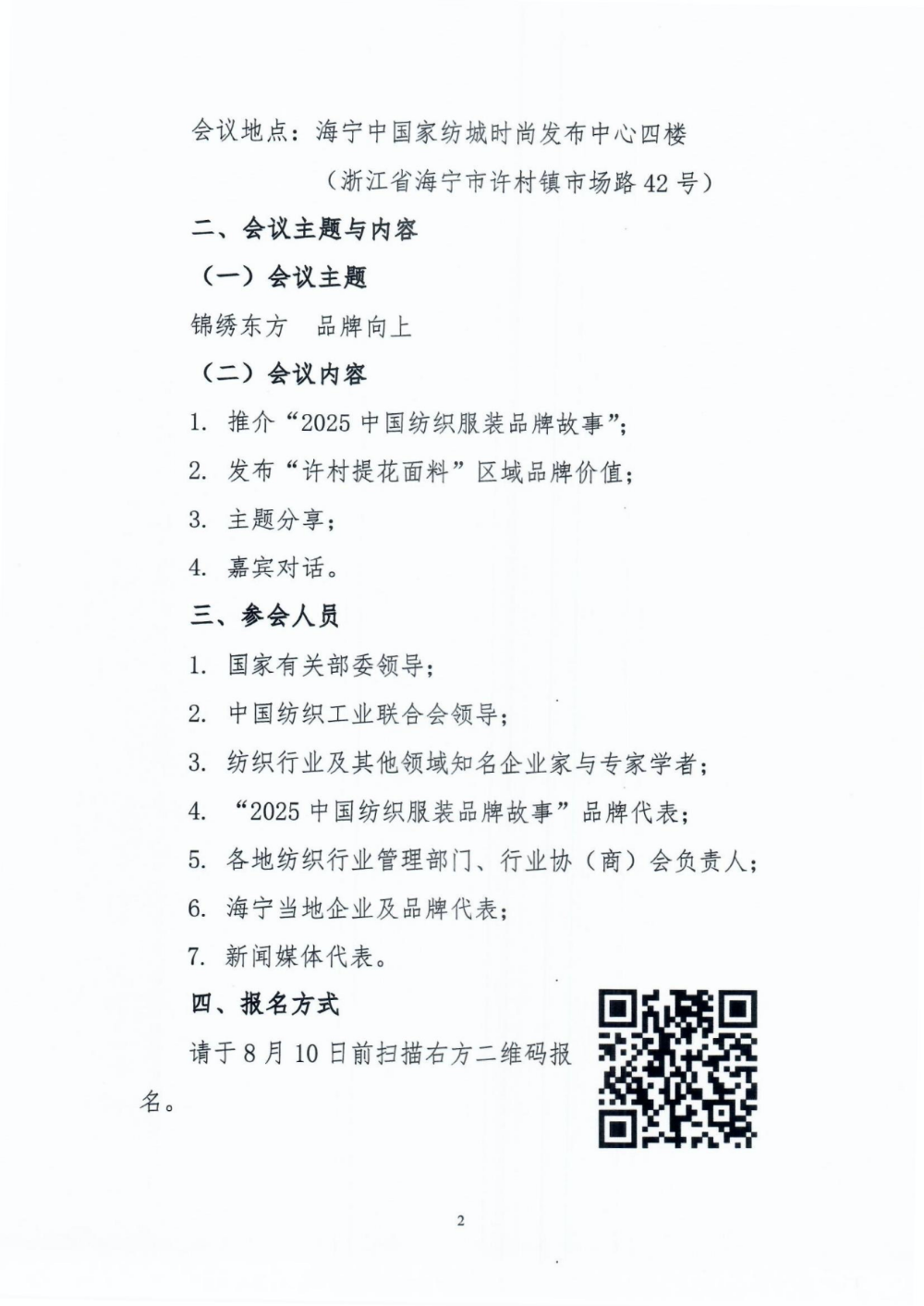當(dāng)紡織產(chǎn)業(yè)站在“十五五”開局與現(xiàn)代化轉(zhuǎn)型的交匯點(diǎn),2025中國(guó)紡織服裝品牌大會(huì)的意義已超越一場(chǎng)會(huì)議——它是產(chǎn)業(yè)向品牌要?jiǎng)恿Α⑾騽?chuàng)新要未來的宣言,是紡織人以品牌為筆,繪就現(xiàn)代化產(chǎn)業(yè)藍(lán)圖的起點(diǎn)。8月的海寧,將匯聚行業(yè)智慧,解碼品牌密碼,為紡織服裝產(chǎn)業(yè)高質(zhì)量發(fā)展注入澎湃動(dòng)能,讓“中國(guó)紡織服裝品牌”成為產(chǎn)業(yè)升級(jí)最鮮明的標(biāo)識(shí)。