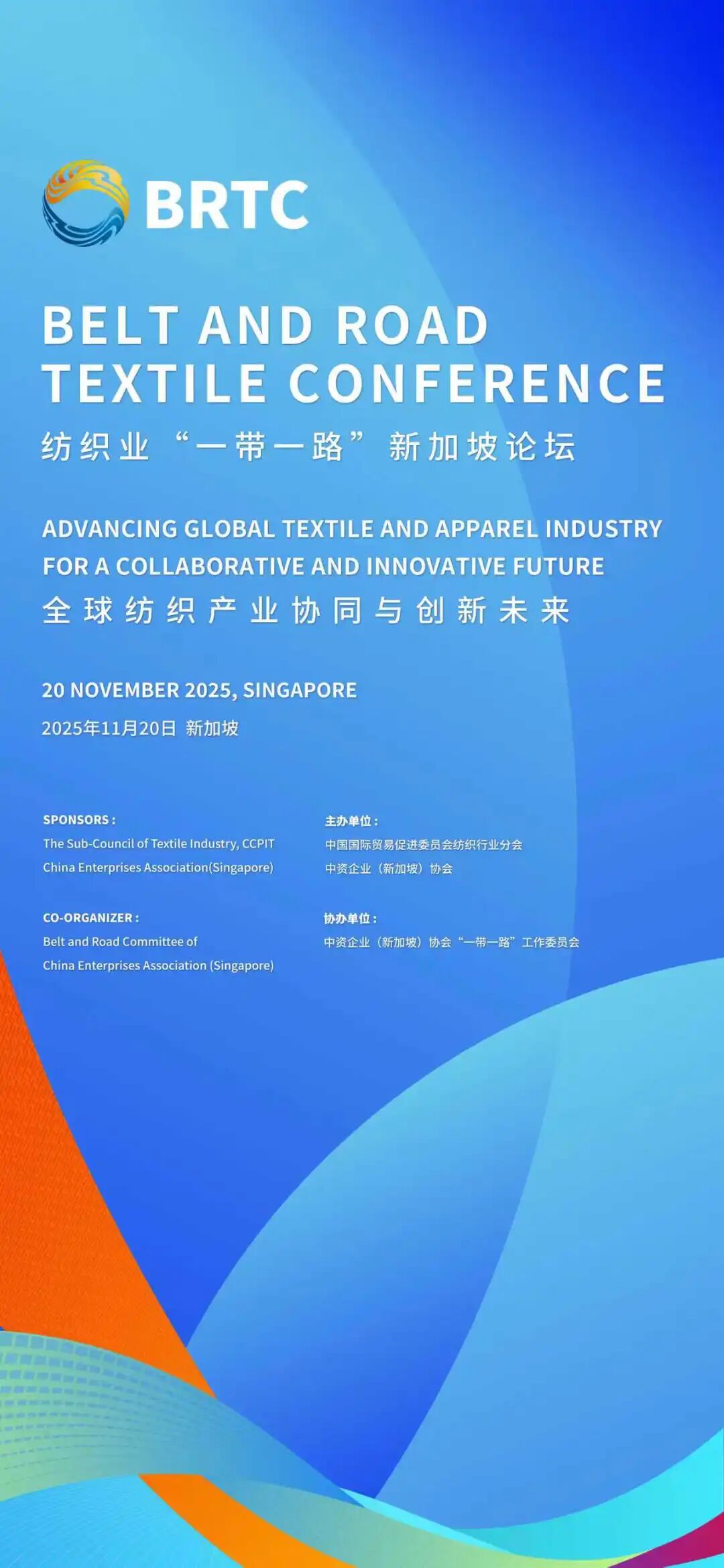 ![]() 歷史性突破源于開放,全球產業(yè)未來基于協同與創(chuàng)新。2025年11月20日,我們誠邀全球紡織業(yè)界同仁共聚獅城,探索合作新路徑、培育增長新動能,共同織就更具韌性、創(chuàng)新與共贏的全球紡織供應鏈,譜寫共建“一帶一路”高質量發(fā)展的新篇章。