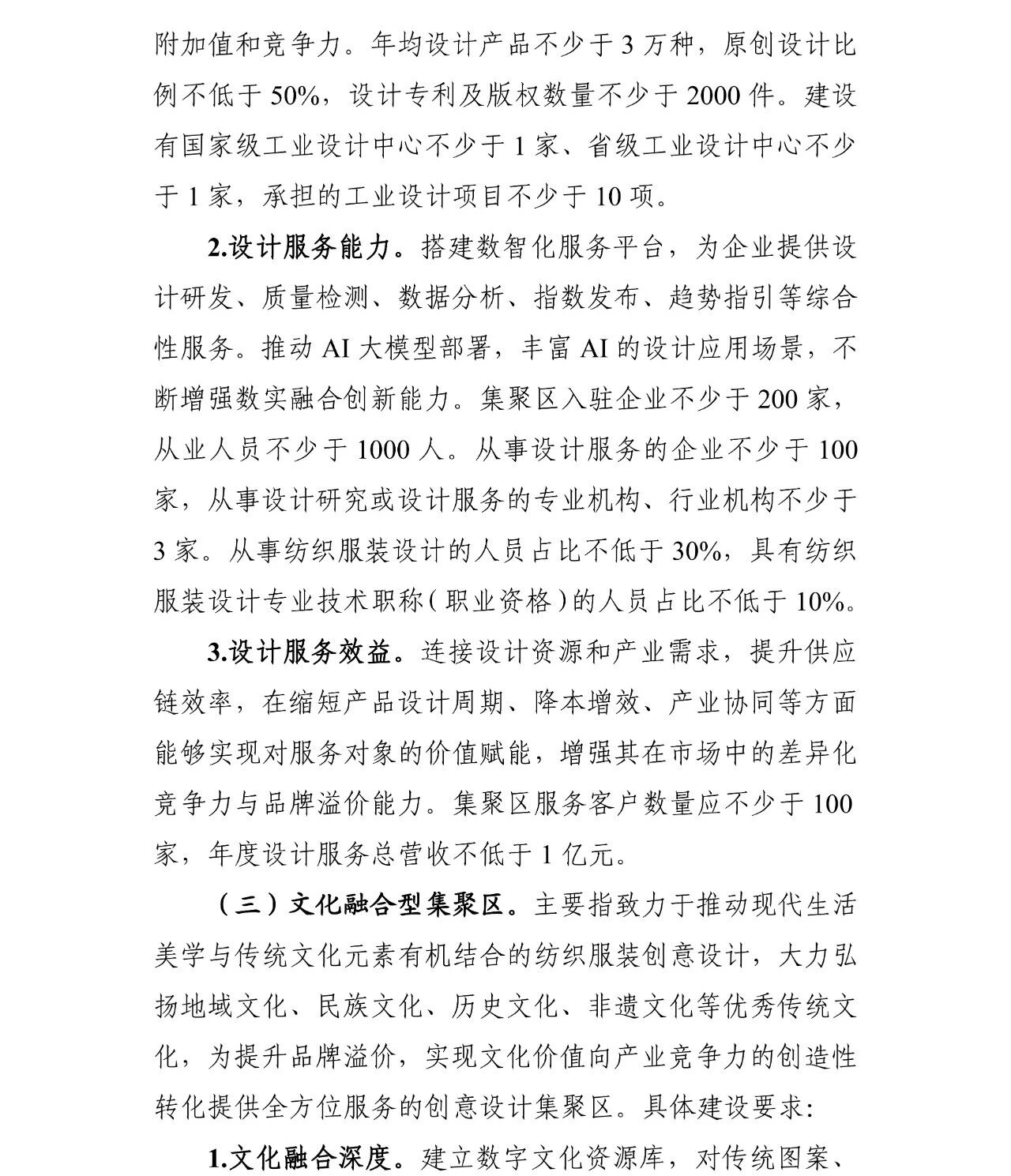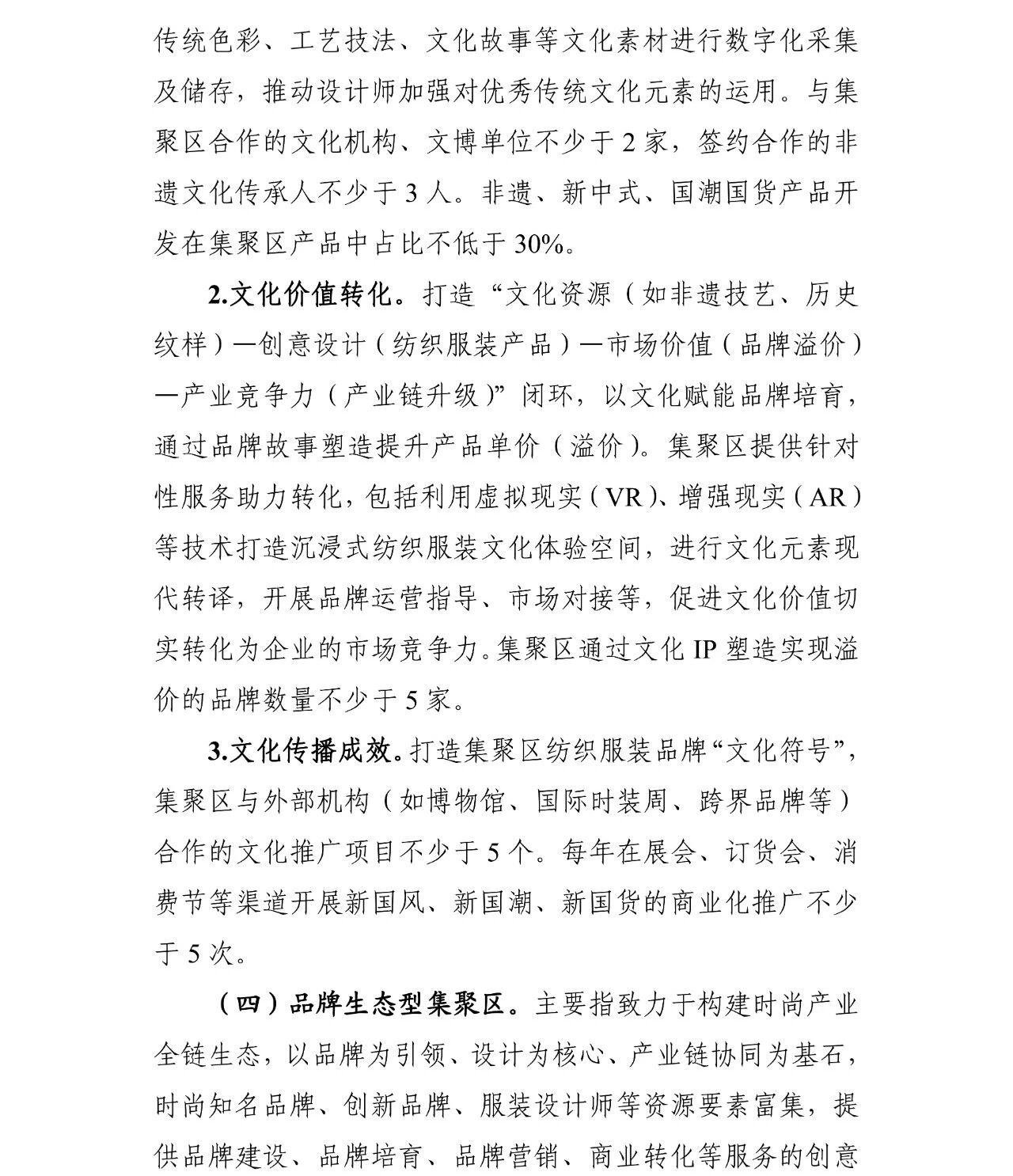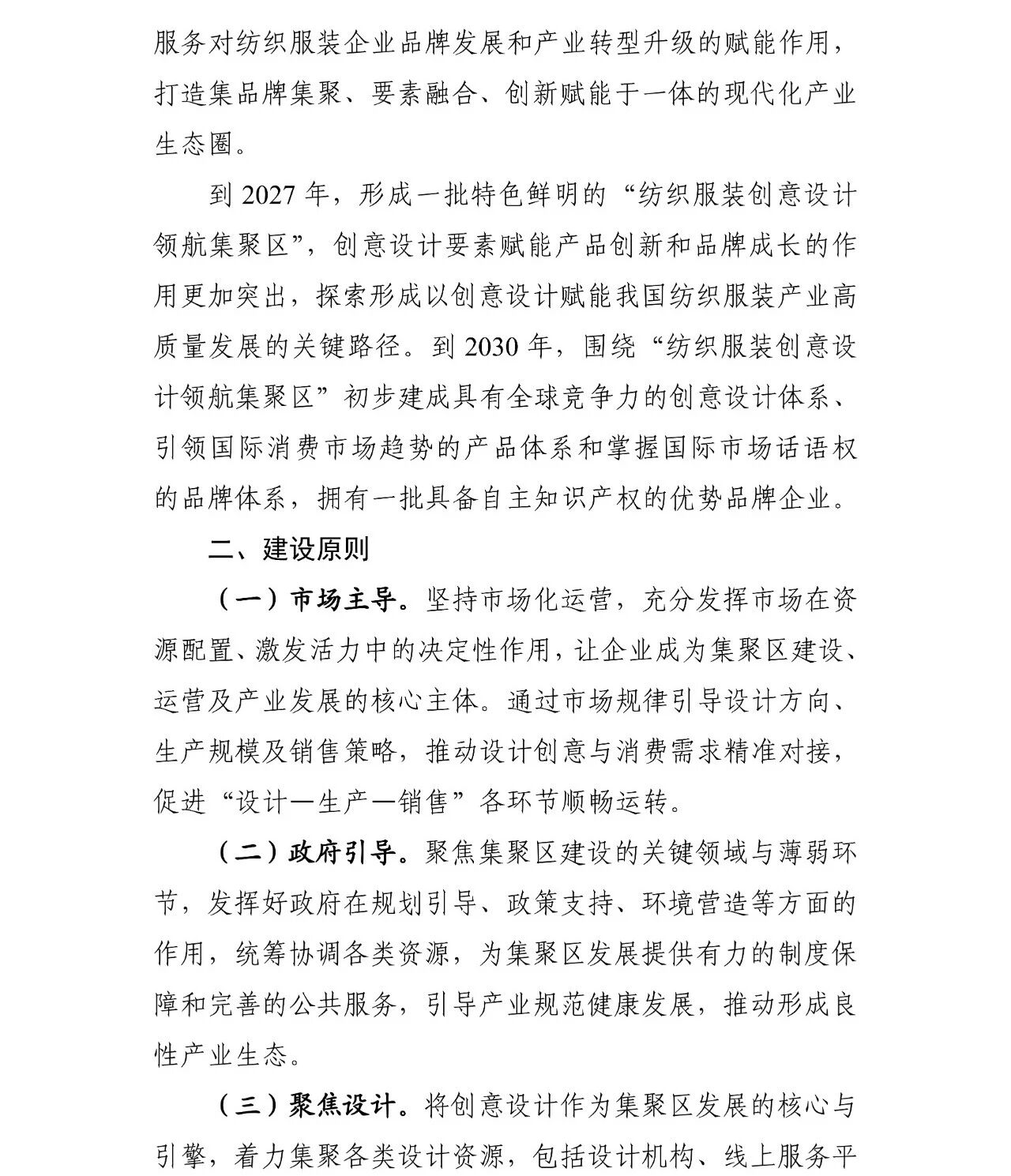 到2030年,圍繞“紡織服裝創意設計領航集聚區”初步建成具有全球競爭力的創意設計體系、引領國際消費市場趨勢的產品體系和掌握國際市場話語權的品牌體系,擁有一批具備自主知識產權的優勢品牌企業。