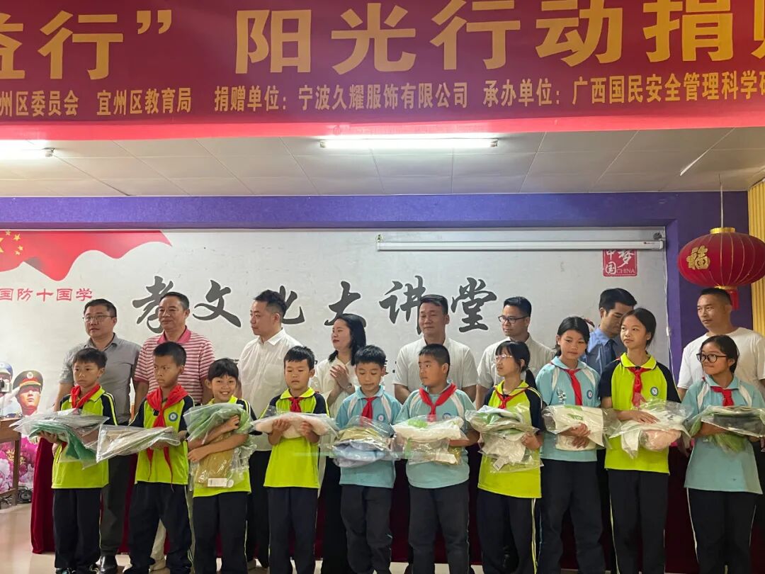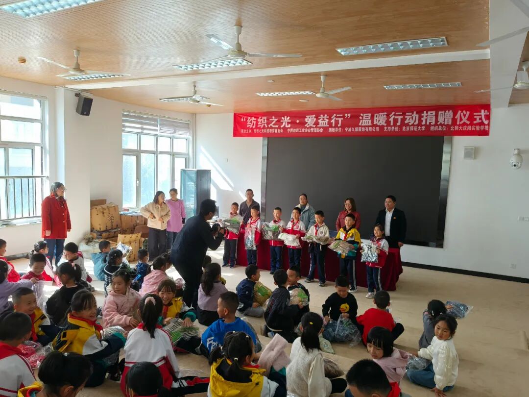 跨越千里,愛心接力。10月15日,“紡織之光·愛益行”寧波久耀走進了北京師范大學(xué)慶陽實驗學(xué)校,向該校教師子女捐贈了424件愛心服裝,為已微涼的秋季增添了濃濃暖意。