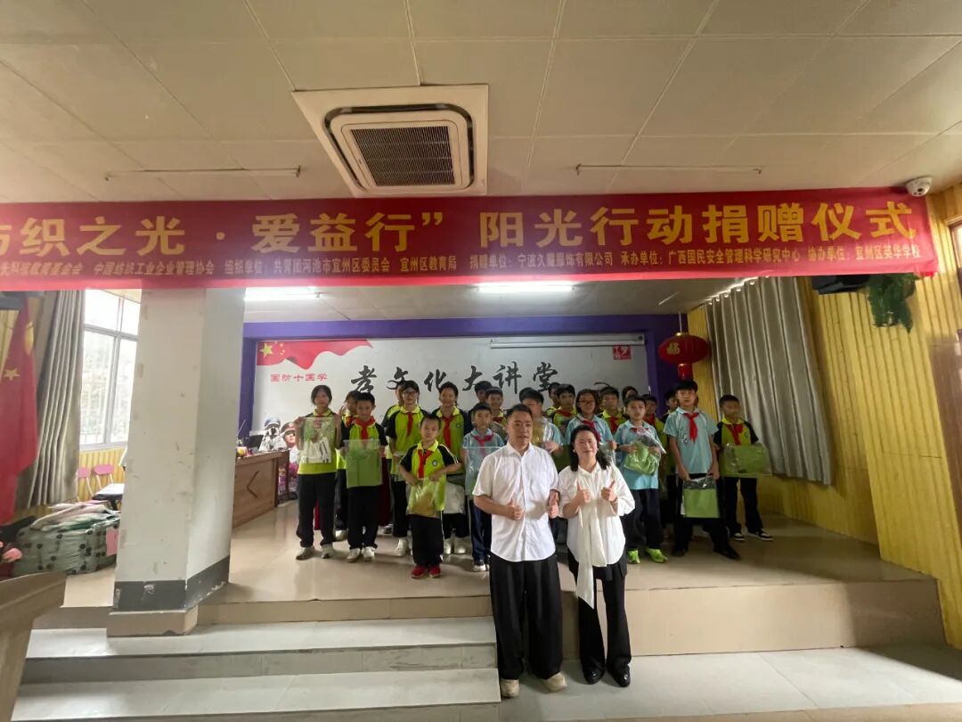 兒童是民族的未來,教育是國之根本。紡織行業(yè)作為關(guān)系國計民生的支柱產(chǎn)業(yè),不僅承載著經(jīng)濟價值,更肩負(fù)著推動社會進步、傳遞人文關(guān)懷的使命。在此背景下,寧波久耀服飾有限公司攜手紡織之光科技教育基金會與中國紡織工業(yè)企業(yè)管理協(xié)會開展的“紡織之光·愛益行”關(guān)愛下一代公益捐贈活動,從華東出發(fā),跨越千山萬水,將來自紡織服裝行業(yè)的關(guān)愛與溫暖傳遞至甘肅慶陽、廣西宜州的孩子們手中,以實際行動詮釋了紡織行業(yè)企業(yè)對我國兒童成長與教育事業(yè)的深切關(guān)懷,共同繪制了一幅溫暖人心的社會責(zé)任畫卷。