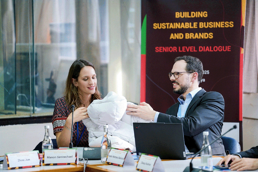 本次論壇是繼2025年9月日內(nèi)瓦萬國宮對話會后的又一重要國際可持續(xù)議程,旨在推動“創(chuàng)建可持續(xù)品牌”愿景倡議從理念共識邁向規(guī)模化實(shí)踐。波司登與寧德時(shí)代、京東、隆基綠能等企業(yè)共同組成代表性案例的“中國樣本”,向世界傳遞可持續(xù)發(fā)展的中國方案。波司登作為首批簽署該倡議的中國企業(yè)之一,此次攜CIRCULAR 3.0產(chǎn)品實(shí)物亮相“創(chuàng)建可持續(xù)商業(yè)與品牌”高級別對話會,以“從衣服到衣服(G2G)”的閉環(huán)循環(huán)科技,獲得聯(lián)合國官員及國際企業(yè)代表的高度認(rèn)可,展現(xiàn)中國品牌在可持續(xù)時(shí)尚領(lǐng)域的創(chuàng)新活力。