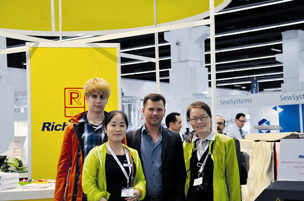 “零等待”全自動縫紉機,無疑是此次富怡展位的最大看點,外商無不被“懸臂升降、頭數多、效率高、功能全、縫跡精”的技術特點所震撼。“第四代縫紉機的問世是革命性的突破,引導了行業潮流,填補了行業空白,這是富怡全球首創的,老外對此也高度關注。” 此外,富怡展出的L2000多針絎縫機以高速、高效而著稱;多國語言版本的服裝CAD軟件和版房成套設備,物美價廉、經濟實惠;大型工業繡花機是富怡的王牌產品,電腦混合纏繞繡花機的繡品栩栩如生,令外商目不暇接??這些都說明了富怡全套解決方案供應商的優勢所在。 據悉,展會當場便售出機器20多臺,展示機器也被一購而光,另接獲訂單若干,擴大了歐洲的代理商和經銷商隊伍,吸引來許多潛在客戶。德國在世界制造裝備領域占據領頭羊的地位,沒有想到,富怡第四代縫紉機會在德國如此暢銷。 對展會中的此番熱鬧景象,周嬌介紹說,其實“Richpeace”品牌在歐洲銷售已有十幾年歷史了,在歐洲各國都很受歡迎,“早在2003年和2006年,富怡就參加過德國科隆IMB展,十多年過去了,富怡的技術實力已經今非昔比,這次以強大陣容展出具有自主知識產權的創新設備,是對歐美日技術的挑戰。” ![]() “我們來自中國大陸”