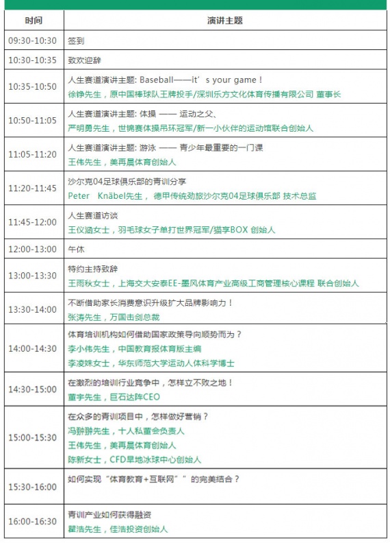 ![]() 以上是來自一對母子的真實對話,從中我們不難發現國內兒童運動市場正處于蓬勃發展中。現當下除了在孩子的課堂教育苦下功夫以外,年輕的80,90后父母們也越來越重視孩子們的品質能力等綜合素質上的培養。 不論是參加專項的體育培訓機構,還是讓孩子嘗試考驗綜合素質的營地教育,年輕父母的消費觀念也反映出兒童運動行業的高速發展前景。 ISPO Shanghai 再度攜手上海市體育局舉辦“人生賽道”活動,上海市明星運動員王儀涵、徐錚、嚴明勇傾情加盟,在兒童運動產業發展論壇的全局中,著眼當下,放觀市場發展,不僅有冠軍人生背后激勵人心的故事,更有最前端的青訓產業信息分享。這個夏天,童年不“童“樣,一切最準確,最前端,最有童趣的信息,都算在ISPO Shanghai 中國兒童運動產業發展論壇,等你來獲取! ![]() ![]() 論壇日程安排: ![]() 嘉賓介紹(以下排名不分先后): ![]() ![]() ![]() ![]() ![]() ![]() ![]() ![]() ![]() ![]() |