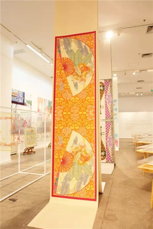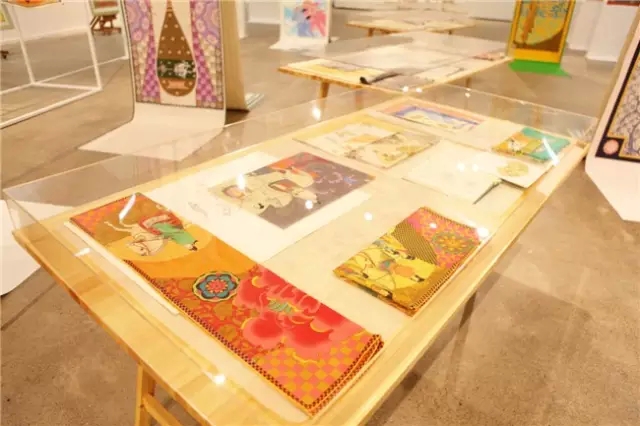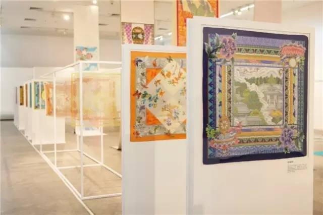 北服創(chuàng)新園一層時(shí)尚展覽廳內(nèi),縱橫交錯(cuò)的巨幅絲巾作品,通過精巧的策展方式,以典雅大氣的風(fēng)格、精美細(xì)致的圖案、大膽新穎的配色融合精良考究的做工與用料,成為彌漫整個(gè)空間的藝術(shù)品,同時(shí)散發(fā)著濃郁的中國韻味。