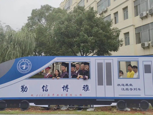 ![]() 畢業典禮結束后,主教學樓前,綴荷池畔,思賢樓旁,一塊塊“我愛江服”“江服明信片”“江服號列車”等展板吸引了很多畢業學子紛紛駐足留影。據悉,學校黨委宣傳部在校園標志性建筑前制作了多個留影背景供畢業生拍照,營造畢業季特色打卡氛圍,深受廣大畢業生的歡迎,這些都成為畢業生離校前駐足拍照留念的景點,給同學們留下了大學生活的美好回憶,也激發了畢業生對母校的留戀與感恩。
