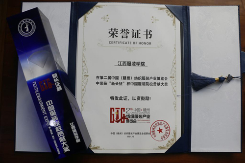 ![]() ![]() 服博會上,于都縣委書記黃法為江西服裝學院理事長涂順強頒發了“于都紡織服裝產業發展顧問”的聘書。同時,江西服裝學院榮獲“新長征杯”中國服裝院校貢獻大獎。