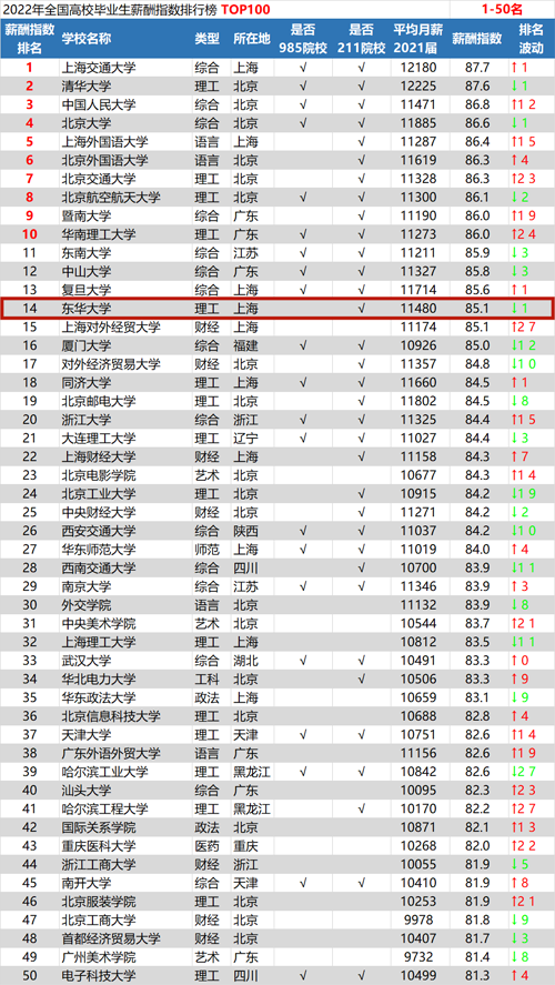 | 東華位列全國第八!2022年全國高校畢業生薪酬排名出爐 |