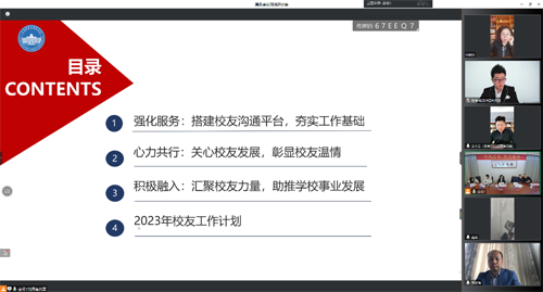 ![]() 李玲對2022年校友工作情況暨2023年校友工作計劃向與會校友進行了報告。她表示,校友工作要秉承服務、情感及發展三個理念,圍繞“聯絡聚人”、 “服務聚心”、“合作聚力”三方面發力開展校友服務工作。2023年將主要在進一步“完善校友會機構建設、強化校友會服務理念、促進發展共同體建設、打造校友文化品牌活動”等四個方面下功夫,做好校友工作。