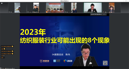 隨后,杭州矛盾文化創意有限公司創始人、04級校友陳偉結合相關數據、事實依據,就2023年紡織服裝行業發展可能出現的8個現象分享了自己對紡織服裝產業未來的看法。