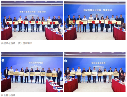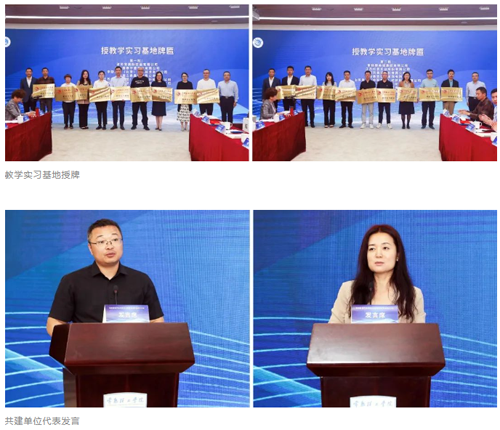 與會領導為波司登國際控股有限公司、江蘇國泰華盛實業有限公司、中聯品檢(北京)檢驗技術有限公司、海瀾之家集團股份有限公司、江蘇國望高科纖維有限公司、江蘇恒力化纖股份有限公司、江蘇陽光集團有限公司、吳江福華織造有限公司、江蘇蘇美達輕紡國際貿易有限公司、安正時尚集團股份有限公司、常熟服裝城集團有限公司、江蘇紅豆實業股份有限公司、晨風集團股份有限公司、斐樂服飾有限公司、魯泰紡織股份有限公司、之禾卡紛集團海門制造中心、浙江凌迪數字科技有限公司、常熟寶灃特種纖維有限公司、蘇州太湖雪絲綢股份有限公司等19家聯盟企業頒發了共建單位、教學實習基地、就業基地牌匾和理事聘書。共建單位代表海瀾之家集團有限公司人力資源總監吉敏生、中聯品檢(北京)檢驗技術有限公司總經理謝凡分別結合校企聯合人才培養實踐等作了重點發言。