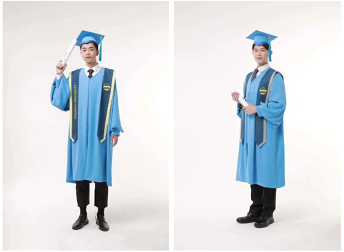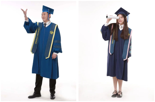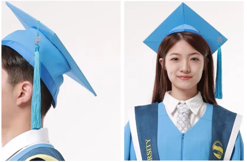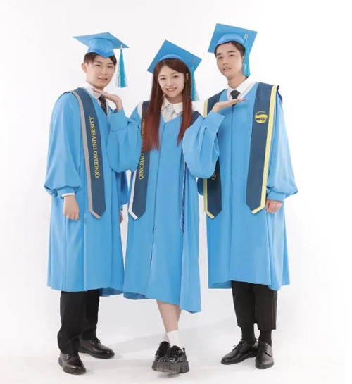 學位袍主色選擇了“青大藍”及“青大紅”