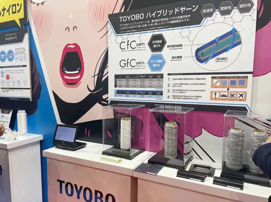 熱塑性碳纖維復合紗線“CfCyarn”可降低廣義環境負荷。作為碳纖維與熱塑性纖維復合紗線,其改善熱塑性碳纖維復合材料樹脂含浸性的特性,拓寬了材料應用可能,目前在車輛部件、福祉用品、體育用品等領域試制。公司還新開發了熱塑性玻璃纖維復合紗線“GfCYarn”,持續豐富產品矩陣。 |