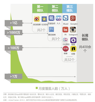 根據艾瑞整理Digiday數據顯示,2015年,美國61%的企業對社交營銷中的原生廣告與內容營銷極為看重。微博數據也顯示,2015年,微博認證企業用戶近百萬。社交網絡營銷得到了越來越多企業的重視和認可。 中國社交網絡營銷前景 用戶規模保持高位 活躍度較高 艾瑞監測數據顯示,2015年3月~2016年3月,中國社交網絡PC端月度覆蓋人數近5億,移動端月度覆蓋人數超過3億,均保持在較高水平。中國社交網絡營銷具有良好的用戶基礎。 用戶黏性向移動端深度轉移 2016年,社交APP在月度覆蓋人數、使用次數及時長方面均有所增長,用戶注意力正向移動端深度轉移。艾瑞分析認為,隨著智能手機的普及,社交產品不斷增多,玩法不斷升級,移動端社交產品的用戶黏性將繼續增強。社交網絡營銷在移動端的創新將成為大勢所趨。 移動社交應用呈階梯式發展 2016年3月,中國各社交APP中,新浪微博與QQ空間的月度活躍用戶規模超過1億,為第一梯隊。而可監測到的月度活躍用戶在1萬至100萬之間的社交類APP共有400余個,長尾效應明顯。 2016年3月中國社交APP月度覆蓋人數分布
