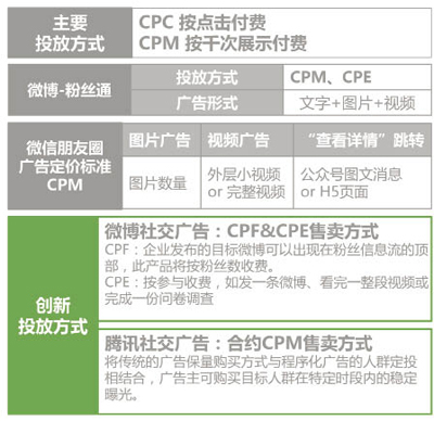 艾瑞監測數據顯示,2015年,社交APP各細分領域中,綜合社交與陌生人社交的用戶規模大且黏性較高,但增速放緩;同性交友、母嬰社區、校園社交的用戶規模較小,但用戶黏性增長較快。 中國社交網絡營銷策略分析 創新投放方式促進效果升級 當前,企業的社交網絡營銷趨勢以整合營銷與深度互動為主。社交網絡平臺針對廣告主的不同需求,提供了更加靈活的廣告表現形式與廣告售賣方式,多種方式的結合將助力社交網絡營銷的效果升級。營銷趨勢包括,移動端整合營銷受關注,網絡營銷投入持續增加,品牌與效果兼重,深度互動為主。 社交廣告主要投放方式