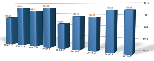 “中國·柯橋紡織指數”20160711期紡織品價格指數收報于104.39點,環比上漲0.01%,較年初上漲0.31%,同比上漲1.32%。 總價格指數
