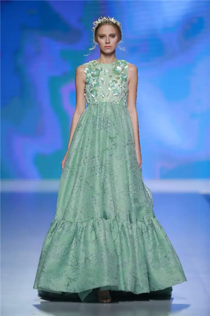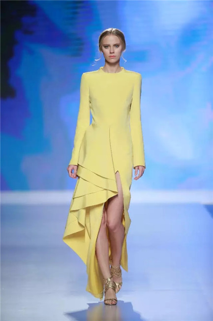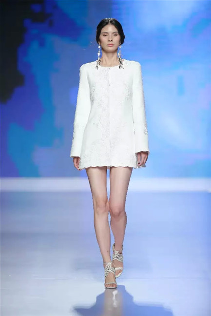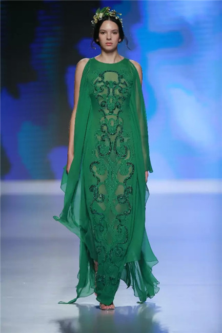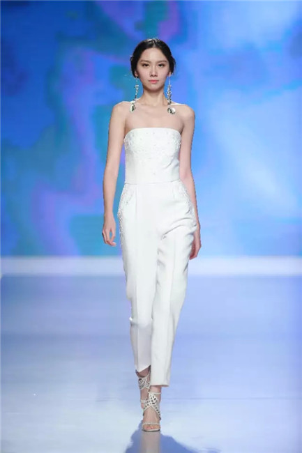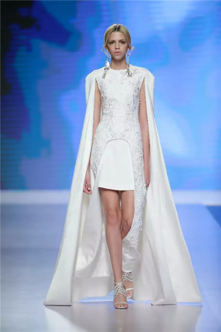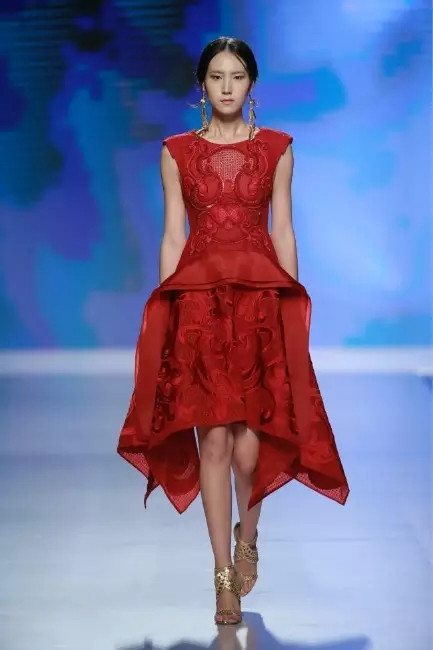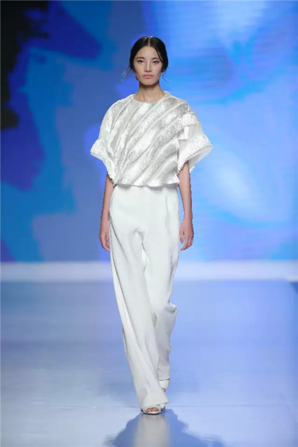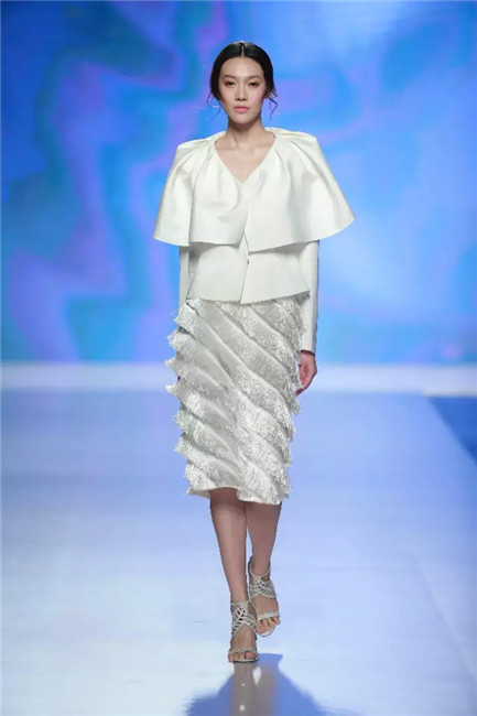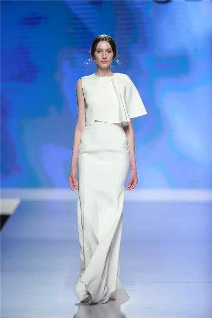 北京國(guó)貿(mào)大酒店,中國(guó)國(guó)際時(shí)裝周閉幕秀,可謂寸土寸金寸光陰,設(shè)計(jì)師謝鋒只帶來(lái)了定制品牌JEFEN BY FRANKIE的32套作品。不是土豪,而是另有故事——科技改變時(shí)尚生活。 開場(chǎng),純凈的潔白,回歸初始。在這場(chǎng)以“伊甸園”為主題的發(fā)布中,黑白主色調(diào)契合了當(dāng)前國(guó)際上回歸經(jīng)典的流行態(tài)度,其間穿插石榴紅、青果綠、淺鵝黃等大膽色調(diào),烘托出當(dāng)日頒獎(jiǎng)典禮的氛圍。值得一提的是最后的大禮服系列,看似繁復(fù),實(shí)則以精準(zhǔn)定位刺繡,省去了傳統(tǒng)服裝的各種破縫線以及結(jié)合線,使得整件衣服除了拉鏈以外,無(wú)縫縫合,渾然一體,天衣無(wú)縫。