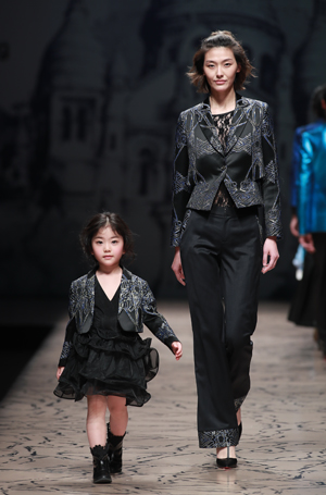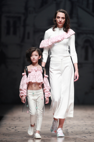 在本季中國國際時裝周的46場專場發布中,許馨尹獨占了四個專場,在中國國際時裝周的歷史上,還從來沒有一個設計師在單季發布中完成4場個人專場發布會。如果一切順利,未來三天,將成為許馨尹職業生涯、乃至生命中重要的日子,她有望成為中國時裝界的“秀場女王”。 親子系列發布在本季時裝周上是一大熱門,想要在品牌林立的秀場上給人們留下點念想,設計師必須找到和自家品牌屬性吻合的創作思路。 在這場發布會的開頭和結尾處,執導本場發布的導演、“模特教父”張艦也進行了精心設計,專門把設計師許馨尹和女兒在日常生活中的兩段對話進行“原音重現”,這種充滿愛意和真實情緒的場景,成了本場發布的一大亮點。當然,創意背后反應的恰恰是設計師許馨尹對Vicky Zhang品牌定位的清晰認知。 事實上,每一場發布會都有一些隱藏的細節值得挖掘,但遺憾的是,這些細節背后的東西很容易被人忽略,而這些東西又往往是設計師想要表達的核心理念。本季Vicky Zhang的設計主題是“回歸”,創作靈感來源于許馨尹童年生活的真實場景。 許馨尹說,Vicky Zhang品牌是她從小就埋藏在心底深處的少女夢,一直以來,她都小心翼翼地保護著這個夢想。“在陪伴女兒Vicky成長的過程中,我認識到作品是我們‘回歸童年’的最好方式,童年可以讓幸福變得很簡單”。 在風格上,本場發布的作品延續了Vicky Zhang品牌的貴族氣質;在設計上,設計師的思路緊扣親子呼應關系,成人裝使用的蕾絲、提花、圖案紋樣、甚至細節處的線條脈絡和童裝都有非常直觀的對應關系,包括童裝部分的小禮服、公主裝、水晶鞋、小西裝、小皮衣的色彩使用方案亦是如此。 要理解許馨尹的這種設計,也許只有穿上Vicky Zhang的衣服后,才會真正體會到它的內涵:從母親的審美視覺出發,為孩子打造的、全新的“小大人”形象。這場秀反應得最具特點的便是在女兒的形象塑造上,母親的喜好與品位很容易影響女兒,因此,你可以看到許馨尹的親子裝在童裝的部分有了豐富多元的創作空間,配合母親著裝的色彩,打破常規,展現華麗和與眾不同。 在許馨尹看來,Vicky Zhang的設計訴求是為母親和孩子提供一周7天的完美著裝方案,不論是工作、還是生活,都是為在不同的場景和時段營造美感和親子氛圍。中國國際時裝周上的作品發布,展示的是Vicky Zhang原創設計能力的冰山一角。
