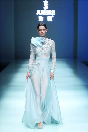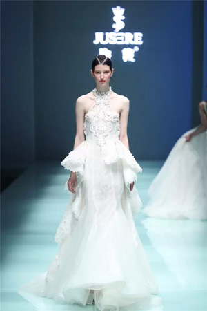 看點二 絕設(shè):神圣之外,婚紗也能做出時尚溫度 繼去年10月代表蘇州虎丘婚紗城亮相中國國際時裝周之后,3月30日下午,知名婚紗禮服品牌“絕設(shè)”再次回歸時裝周,設(shè)計師魏啟瑩帶著全新設(shè)計的30套婚紗禮服上演了一場帶有溫度的時尚大秀。 本季發(fā)布的主題源于絕設(shè)的品牌名,意為“絕對的原創(chuàng)設(shè)計”。魏啟瑩表示,本季作品的設(shè)計靈感來源于歐洲建筑中的雕刻藝術(shù),特別是歐洲巴洛克風(fēng)格教堂上呈現(xiàn)的雕刻藝術(shù)作品給了她不少啟發(fā)。