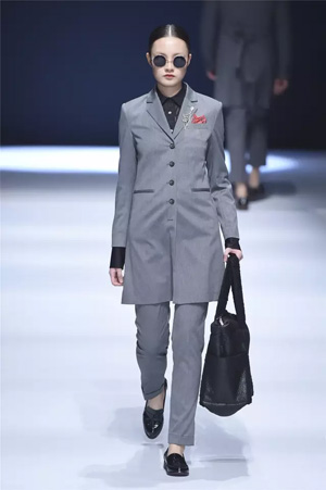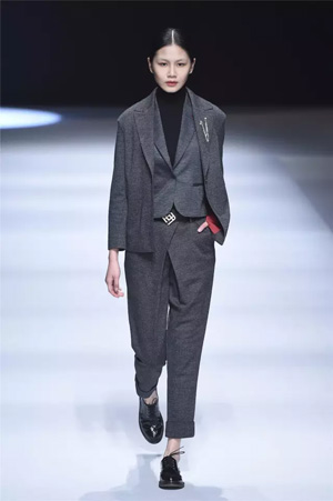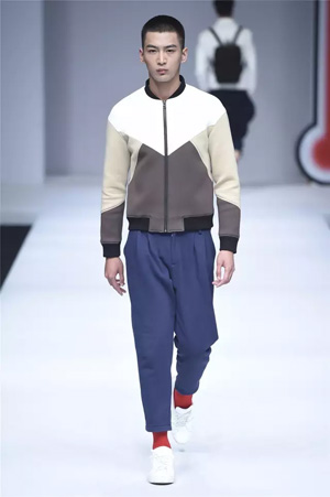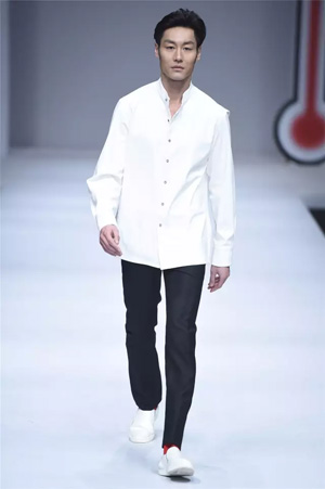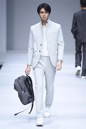 本場發布的RX品牌,由許馨尹與著名演員任重合作推出(R代表任重,X代表許馨尹),聚焦設計師+明星跨界合作模式,產品風格上則定位“微潮”。 在裁剪廓形上,本季作品遵循寬松自由的風格。在面料選擇上,主要偏重功能和舒適的面料,在選用防皺面料的同時,也考慮了功能性、舒適度,質感柔軟、伸縮性較大、透氣、吸汗,滿足暖男們可居家、可外出穿著的需求。