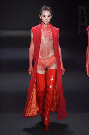 系列靈感來自于設計師對現在婚姻幸福程度的思考。小編認為,這只不過是胡社光運用中國元素表達精神訴求的一個突破口,他才不在乎圍城里的人是否真的幸福。 敢于運用濃烈的元素來喚起中國人千年圖騰崇拜式共鳴的勇氣是值得保護的,畢竟在商業化的市場競爭下,還愿意為設計延伸成衣之外文化的設計師不多,無論手段是否高明,或者他出于哪種趨勢的考慮,我們都應該欣賞,原因很簡單:物以稀為貴。 可是,這場萬人熙攘的大秀之后,會不會“紅”得過于悲涼?