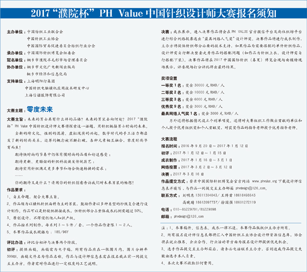 | 2017“濮院杯”PH Value中國針織設計師大賽報名啟動 |