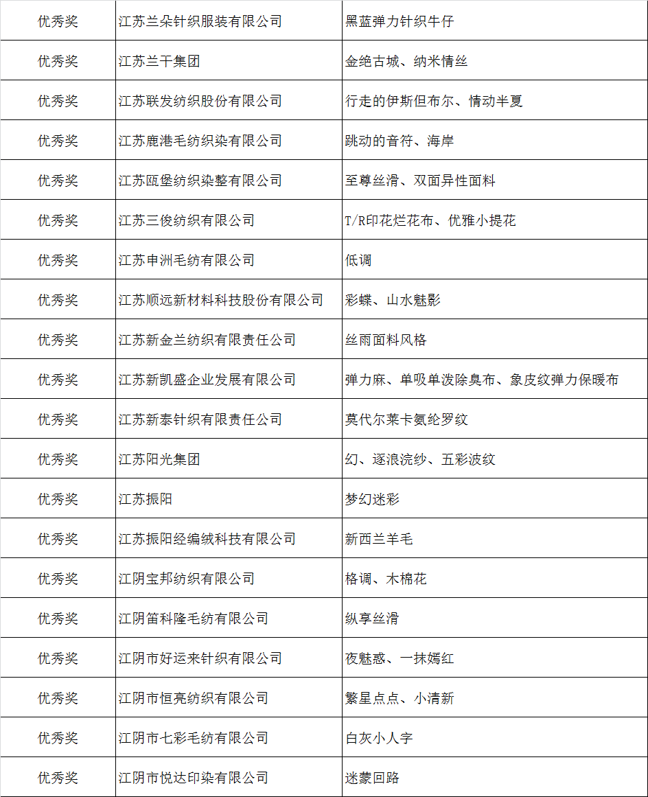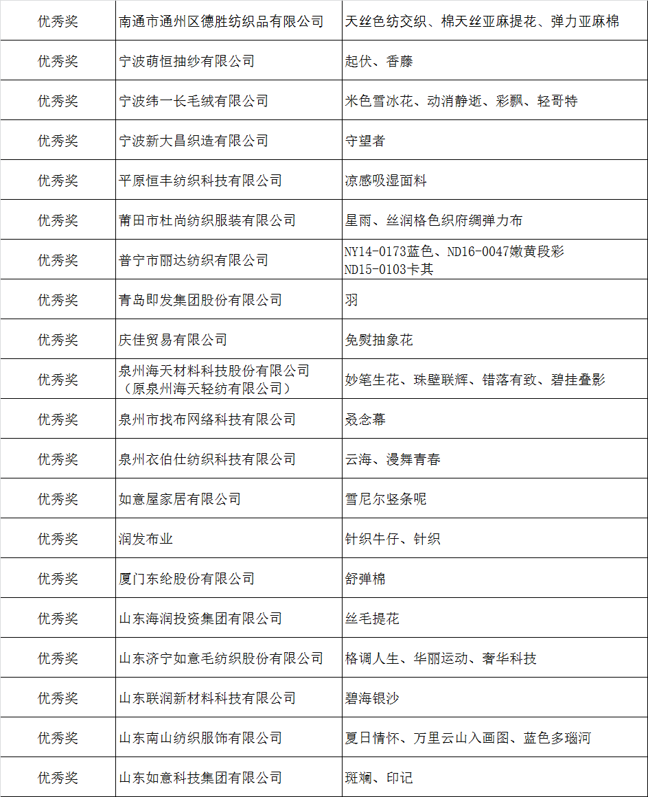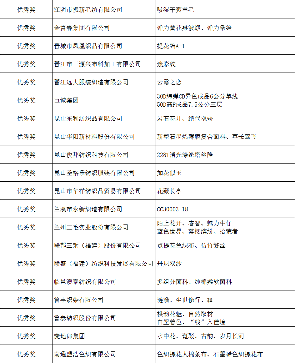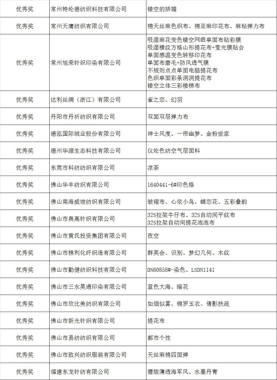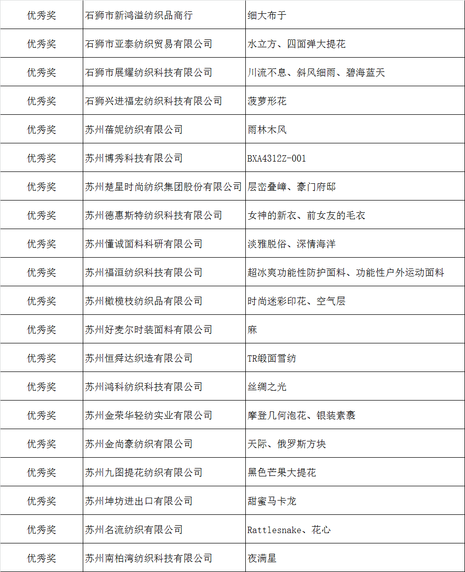 第37屆(2018春夏)中國流行面料入圍評審獲獎名單出爐!