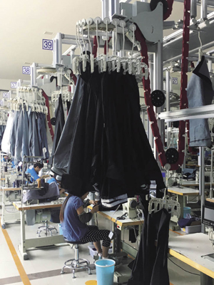 本刊記者_劉萍 每件衣服在工業化和信息化的“照料”下,自主下單,智能排版,自動裁剪,可將原來約一個月的生產周期縮短到7個工作日,每個款式由1000件起訂縮小到1件起訂,能極大提高企業的反應速度和生產效率,實現標準化、精細化、柔性化生產。 6月23日,在中國紡織工業企業管理協會九屆五次常務理事擴大會議暨產業對接會上,山東海思堡電子商務有限公司董事長馬學強的發言引起了關注,牛仔服裝的柔性生產讓人眼前一亮。 始建于2008年的山東海思堡服裝服飾集團股份有限公司,現有員工1000余人。公司通過“服務于大品牌的小批量、時裝化牛仔服裝供應商”的差異化發展戰略,為眾多國際、國內知名服裝品牌提供供貨服務,與國內50余家服裝企業擁有長期合作關系。現有20條國內最先進的衣拿自動化吊掛式流水線和20條專業化牛仔生產線,年產能500萬件,是山東省最大的專業化牛仔服裝生產企業,同時是山東省服裝協會副會長單位、淄博牛仔行業聯盟理事長單位。 這家淄博市首屆創新管理獎企業,還于2014年榮獲中國紡織工業聯合會“第三屆全國紡織行業管理創新成果優秀獎”。2015年公司實現銷售收入2.10億元,利稅3000余萬元。2015年2月11日,公司正式登陸新三板。
