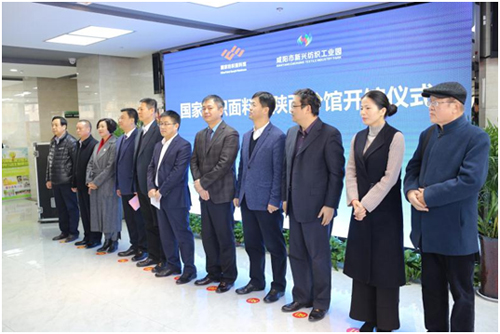 中國紡織工程學會常務副理事長伏廣偉和咸陽市副市長張小平為國家紡織面料館陜西分館揭牌。