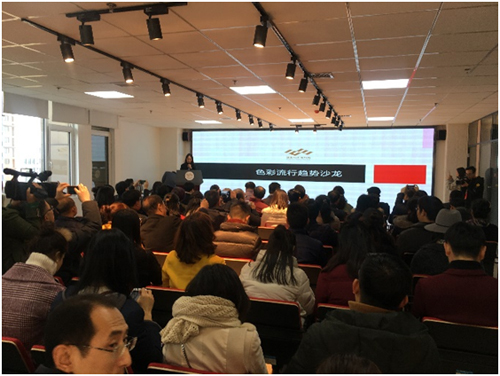 活動現場,國家紡織面料館特別邀請了中國流行色協會副秘書長招霞、中國紡織信息中心Coloro色彩事業部色彩設計總監為與會代表舉行了“色彩流行趨勢沙龍”,以創新的視覺化色彩體系分析和應用2018/19秋冬流行色,通過典型國際品牌案例,探討色彩風格與品牌定位之間的關系;結合實踐練習迅速掌握色彩搭配規律與技巧。