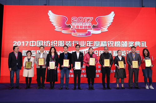 3月14日,中國紡織工業聯合會春季聯展開幕首日,“2017中國紡織服裝行業年度精銳榜頒獎典禮在上海國家會展中心1號館CHIC TALK區舉行。
