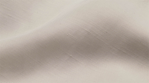 獲獎企業:紹興舜佳紡織科技有限公司 面料名稱:懷錦 成分:粘膠44%,天絲品牌莫代爾纖維30%,亞麻26% 看點:粘膠、天絲品牌莫代爾纖維與亞麻搭配以中和亞麻的易折皺和刺癢感,間隔的竹節紗與凸條斜紋結構形成富有肌理感的外觀,后整理的絲光工藝與酶處理使面料表面光潔且光澤柔和,中性的云朵白選色潔凈自然。