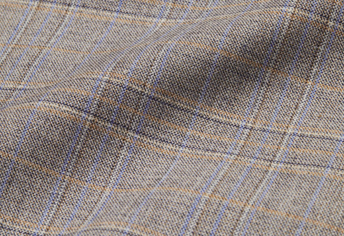 獲獎企業:江蘇丹毛紡織股份有限公司 面料名稱:秋意濃 成分:美麗諾羊毛45%,天絲品牌莫代爾纖維30%, 滌綸20%,萊卡5% 看點:美麗諾羊毛與天絲品牌莫代爾纖維、滌綸紡制精紡高支毛紗,琥珀棕、幼獸棕、淺藍、深藍四種顏色通過斜紋結構的變化,用微顆粒肌理感的線條重塑格紋形狀,呈現帶有模糊化色點的精致自然感。