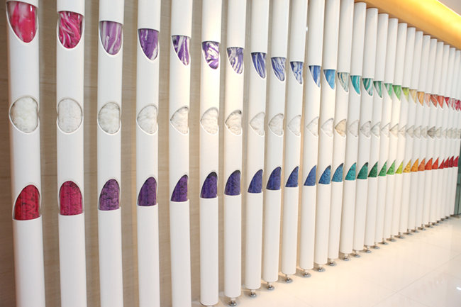 顛倒流程的產品 上虞生產基地是華孚色紡五大生產基地之一,主要進行新型紗線生產,記者在生產車間看到,五顏六色的纖維正在從一臺臺紡紗設備上變成一根根色彩艷麗的紗線。 這與傳統的顏色單調的紡紗工廠形成了鮮明的對比。 “這些顏色鮮艷的紗線產品就是色紡紗。”該車間負責人告訴記者。 所謂色紡紗,就是先將纖維染成有色纖維,然后將兩種或兩種以上不同顏色的纖維經過充分混合后,紡制成具有獨特混色效果的紗線。 但是在傳統的紡織服裝生產流程中,一般都是先紡紗、后染色,也就是紡成紗線后紗線染色,或是紗線織成布料后布料染色。然而,色紡紗技術的出現,將這個流程顛倒了。 據相關資料顯示,色紡紗在上世紀90 年代初期才被引入中國大陸,而恰恰正是那個時候,色紡紗的商機被剛剛從政府部門“下海”不久的華孚色紡董事長孫偉挺看中。 “我最開始是從熟悉的‘兩紗兩布’(白紗白布、坯紗坯布)開始做,當時競爭十分激烈。在一個偶然的機會,我聽一個朋友說,有一種叫色紡紗的紡織品,盈利較高,很多企業拿著現金卻買不到貨。”孫偉挺說。 在對色紡紗市場進行充分的研究和分析后,孫偉挺把色紡紗確定為企業重點發展的主業,并創立了自己的品牌。