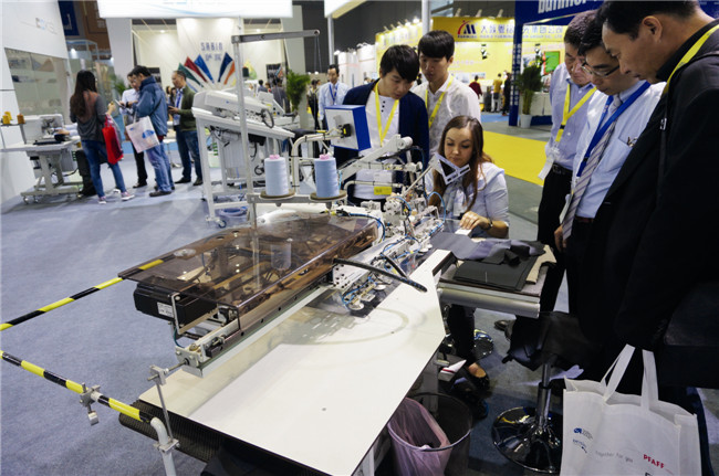 最專注的觀眾 傳說中的智能縫制單元現(xiàn)身智能制造主題區(qū),各種高精尖的設(shè)備大大提升了服裝制造效率。展位現(xiàn)場,吸引了眾多專業(yè)觀眾圍觀和咨詢的是新型尖端設(shè)備,可不是展示設(shè)備的外國美女哦。