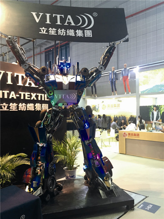 最彪悍的雇員 展會現(xiàn)場的“吸睛”大戰(zhàn)已進(jìn)入白熱化,為了最大程度地招攬觀眾、博取眼球,參展商拼了。立笙紡織集團(tuán)請來的這位最大牌的雇員,霸氣十足的氣場讓人情不自禁駐足觀摩。